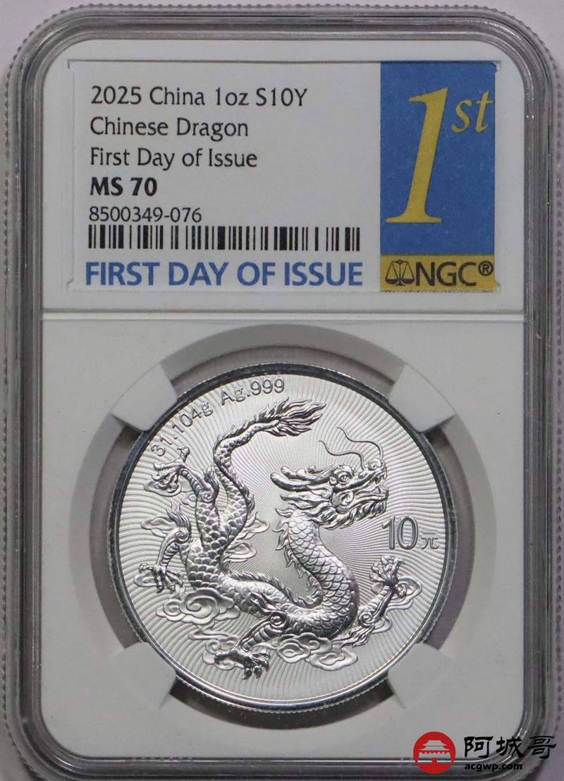 Lot:76 2025年中国龙银币 NGC MS70首日标