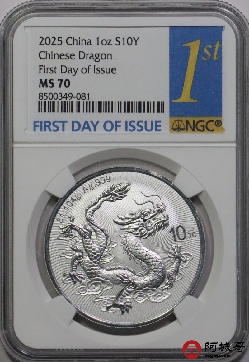 Lot:81 2025年中国龙银币 NGC MS70首日标