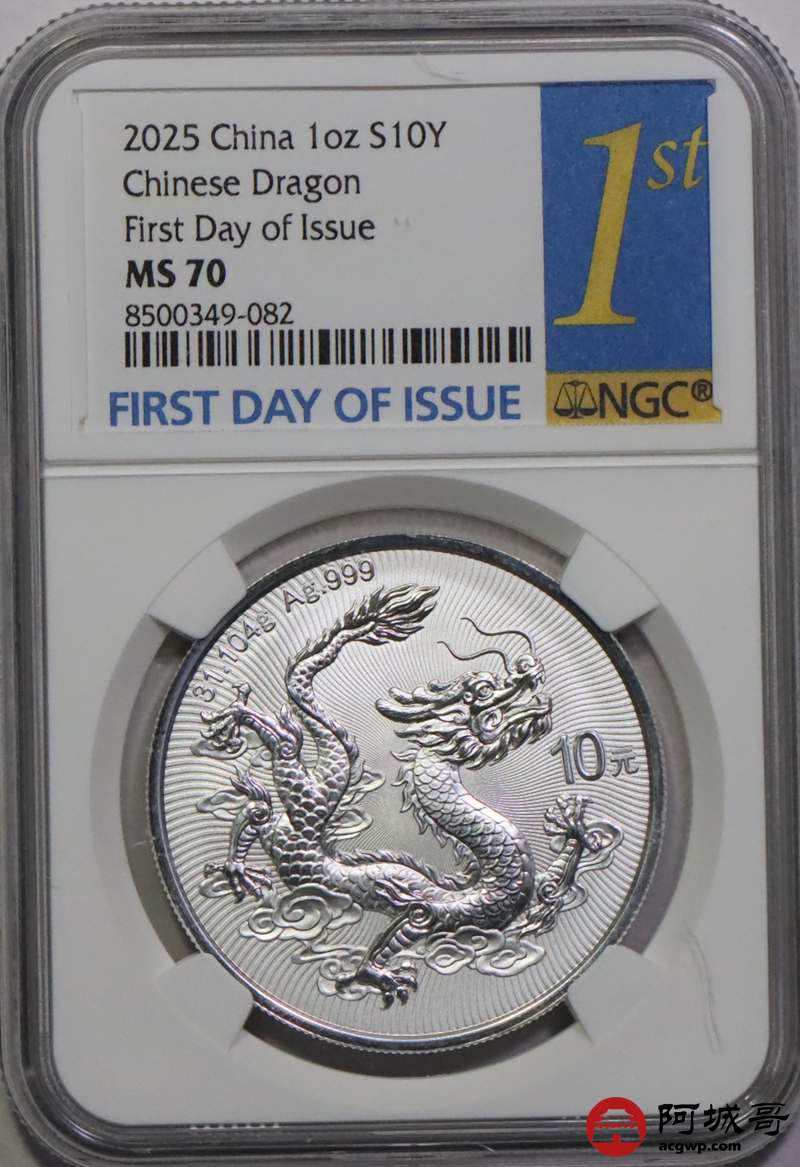 Lot:82 2025年中国龙银币 NGC MS70首日标