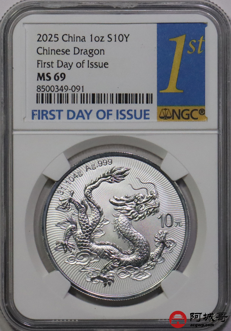 Lot:91 2025年中国龙银币 NGC MS69首日标