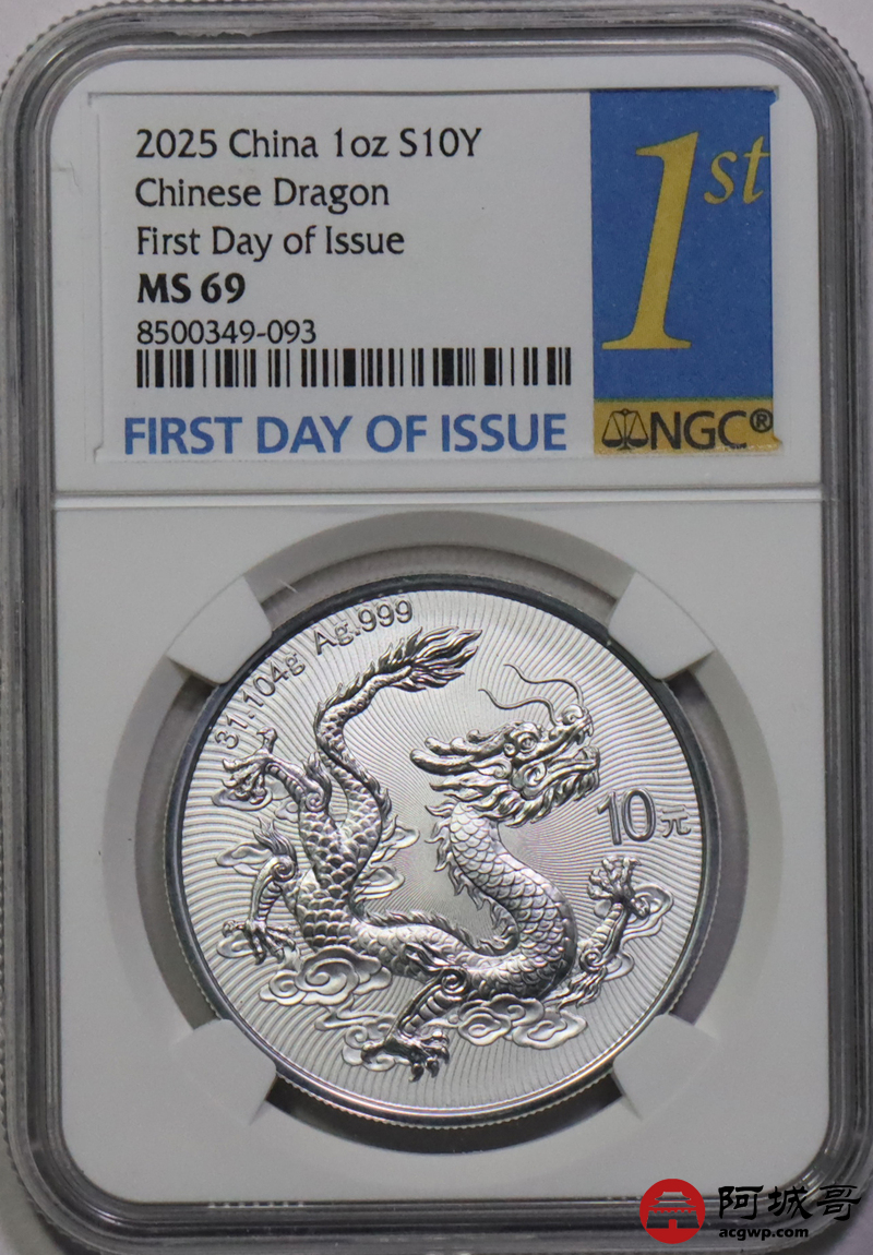 Lot:93 2025年中国龙银币 NGC MS69首日标