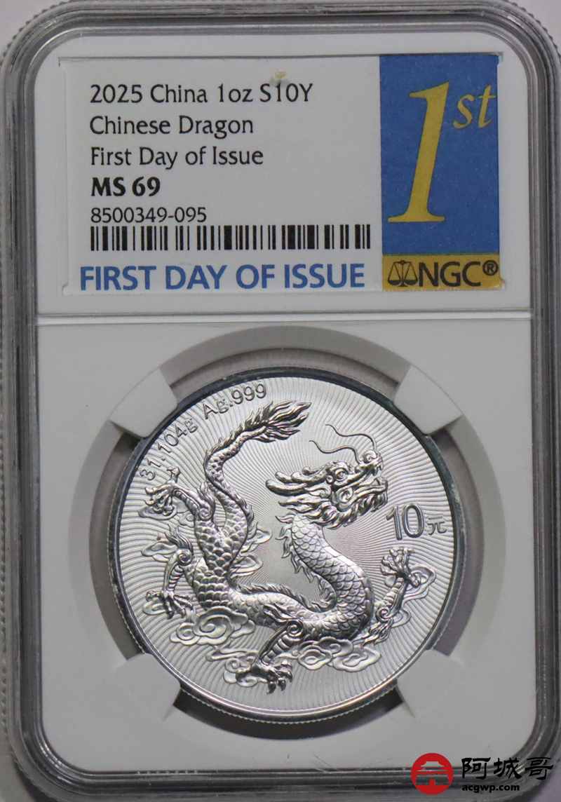 Lot:95 2025年中国龙银币 NGC MS69首日标