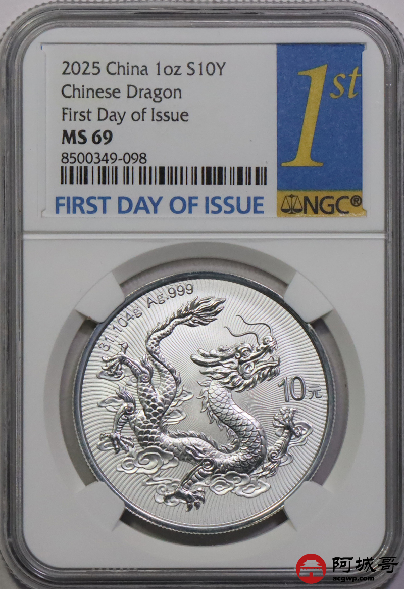 Lot:98 2025年中国龙银币 NGC MS69首日标