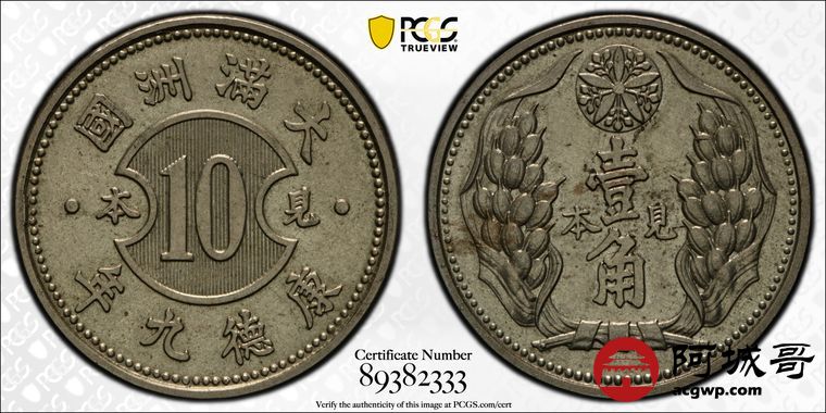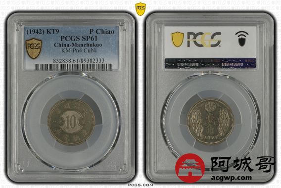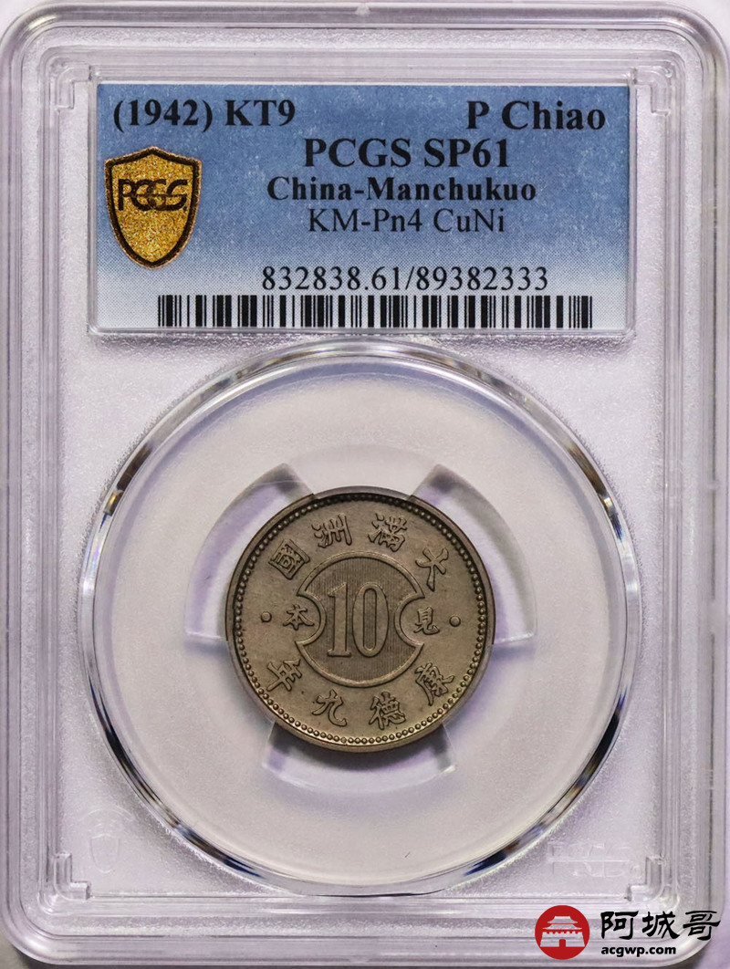 Lot:20 1942 大满洲国 康德九年 见本 一角样币 PCGS SP61