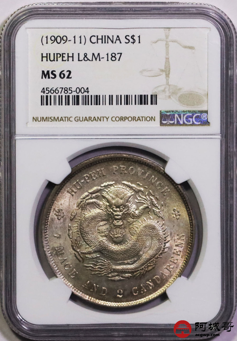 Lot:16 黄油光 湖北宣统七钱二分 NGC MS62