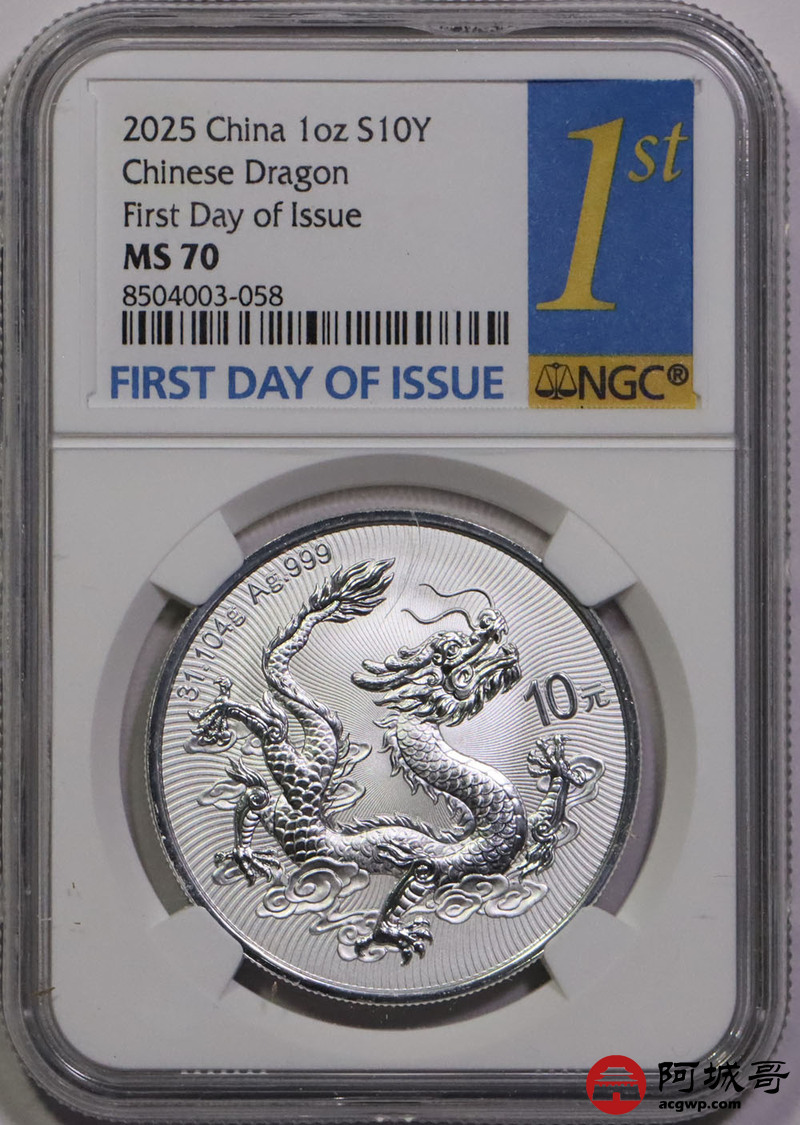 Lot:40 2025年中国龙银币 NGC MS70首日标