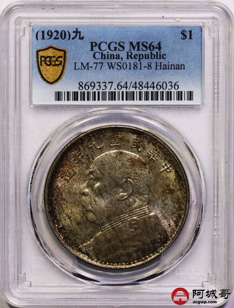 Lot:1 五彩转光 九年大头 海南版 PCGS MS64