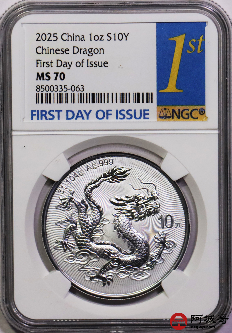 Lot:23 2025年中国龙银币 NGC MS70首日标 银尾龙