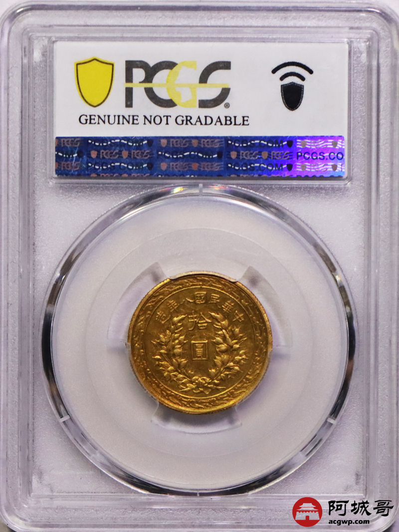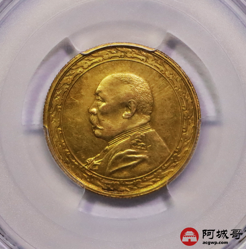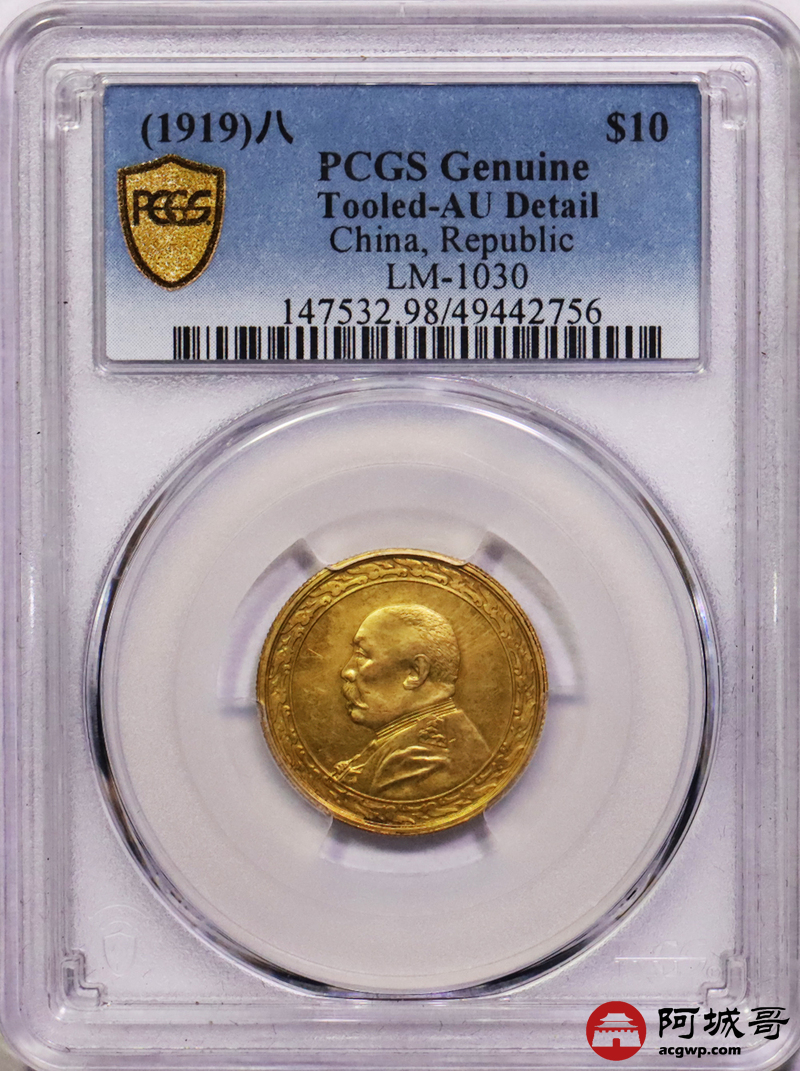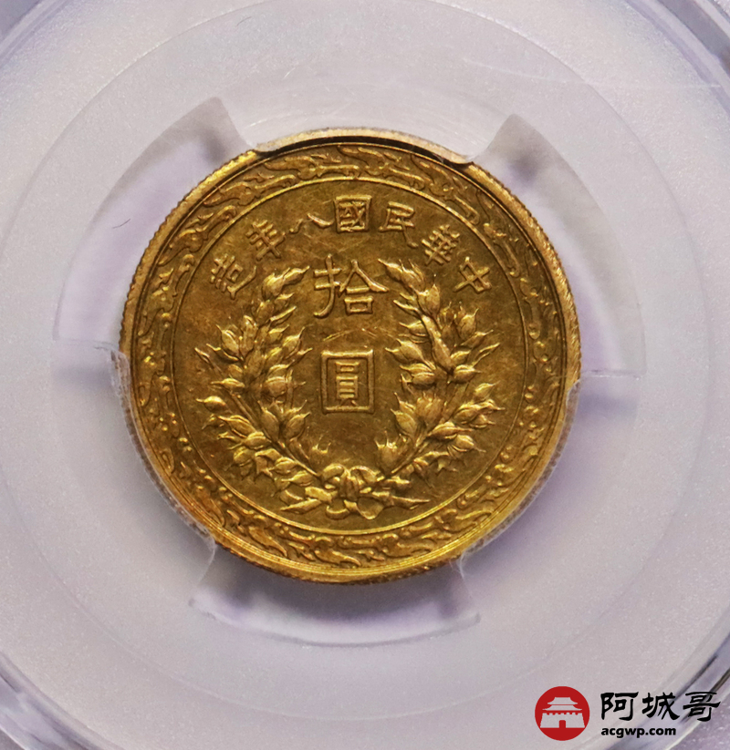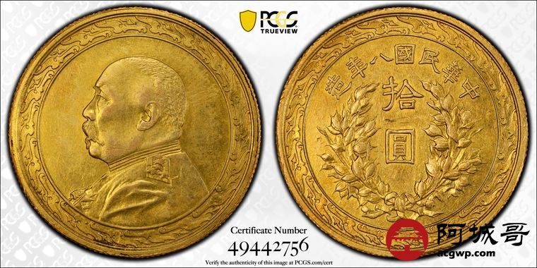 Lot:15 民国八年袁像拾圆金币 铸打深俊 低评状态 PCGS AU