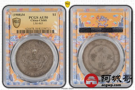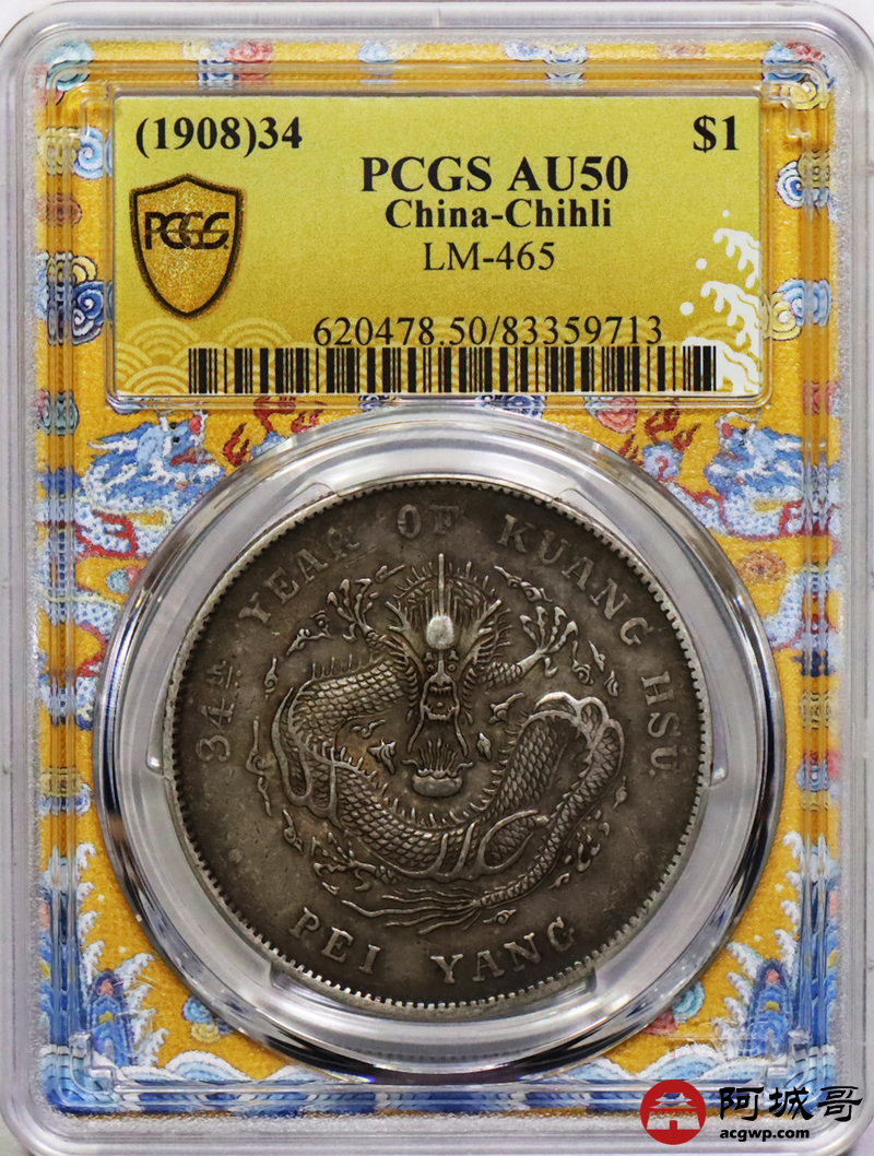 Lot:7 原味深打 传世包浆 北洋34七钱二分 PCGS AU50