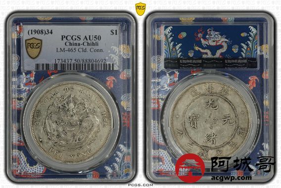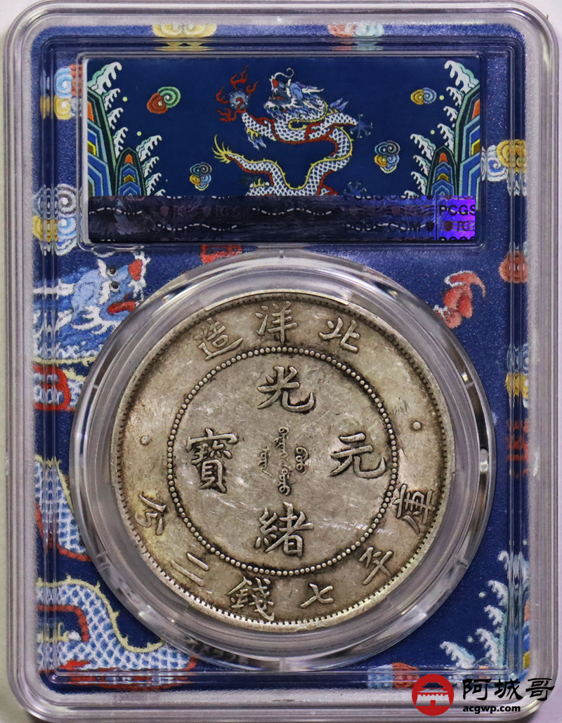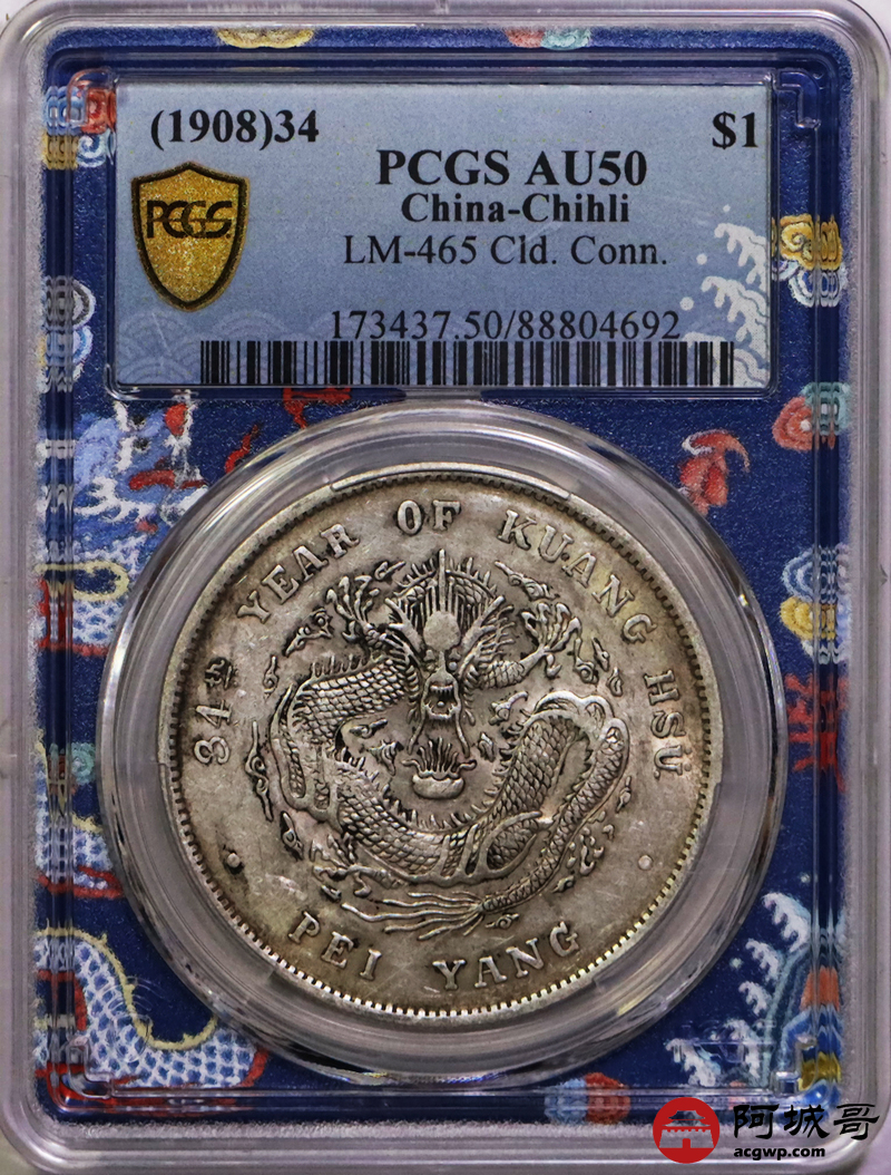 Lot:13 初铸大宽边黄油底光 北洋34七钱二分PCGS AU50