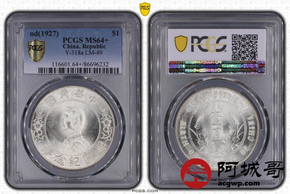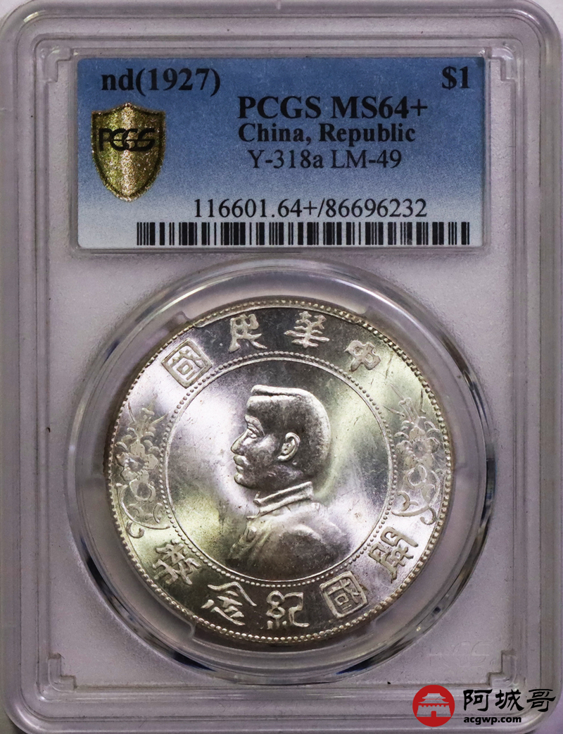 Lot:21 车轮转光 孙像小头壹圆 PCGS MS64+