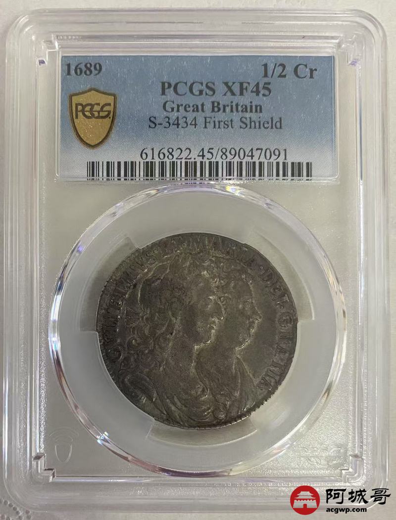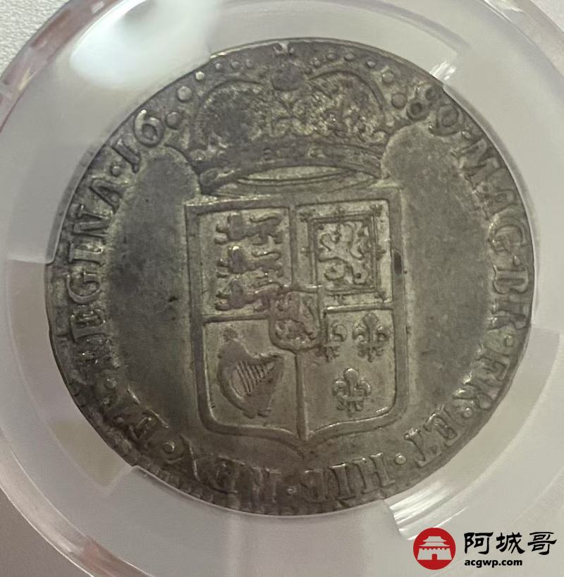 Lot:10 a17世纪英国革命的起源是国会和王朝之间的矛盾,国会获胜。1688年的“光荣革命”,詹姆斯二世被推翻,王位由玛丽及其夫荷兰亲王威廉继承,条件是必须接受《权利法案》。1689年通过的限制王权、保障人民各项权利的《权利法案》,这是英国对世界最大的政治贡献!议会宣布威廉为英国国王,玛丽为女王,实行双王统治,英国成为君主立宪国家,即国王的权力置于法律之下 PCGS XF 45