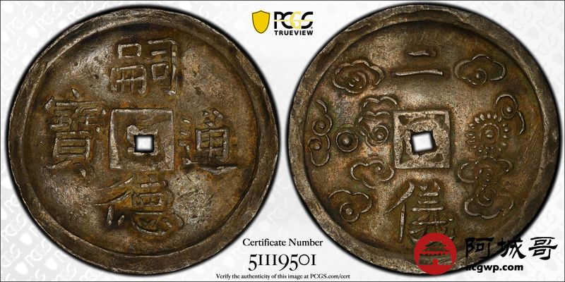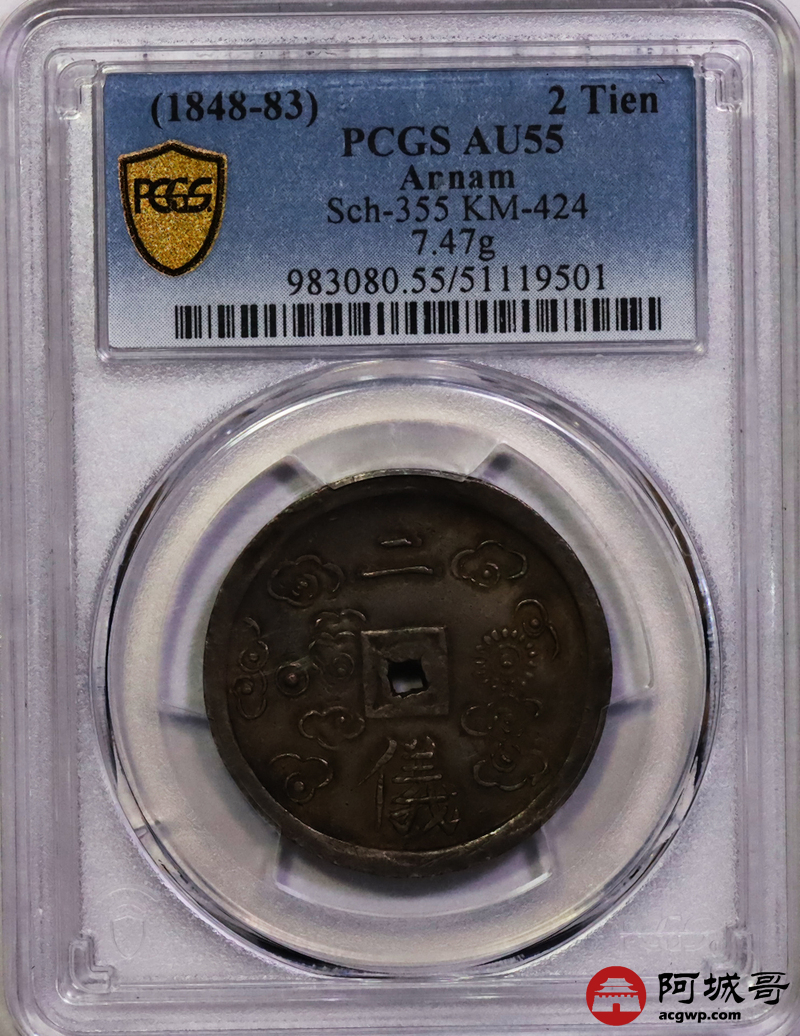 Lot:23 PCGS AU55 安南嗣德二仪五彩方孔银币