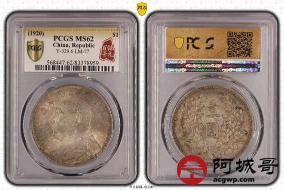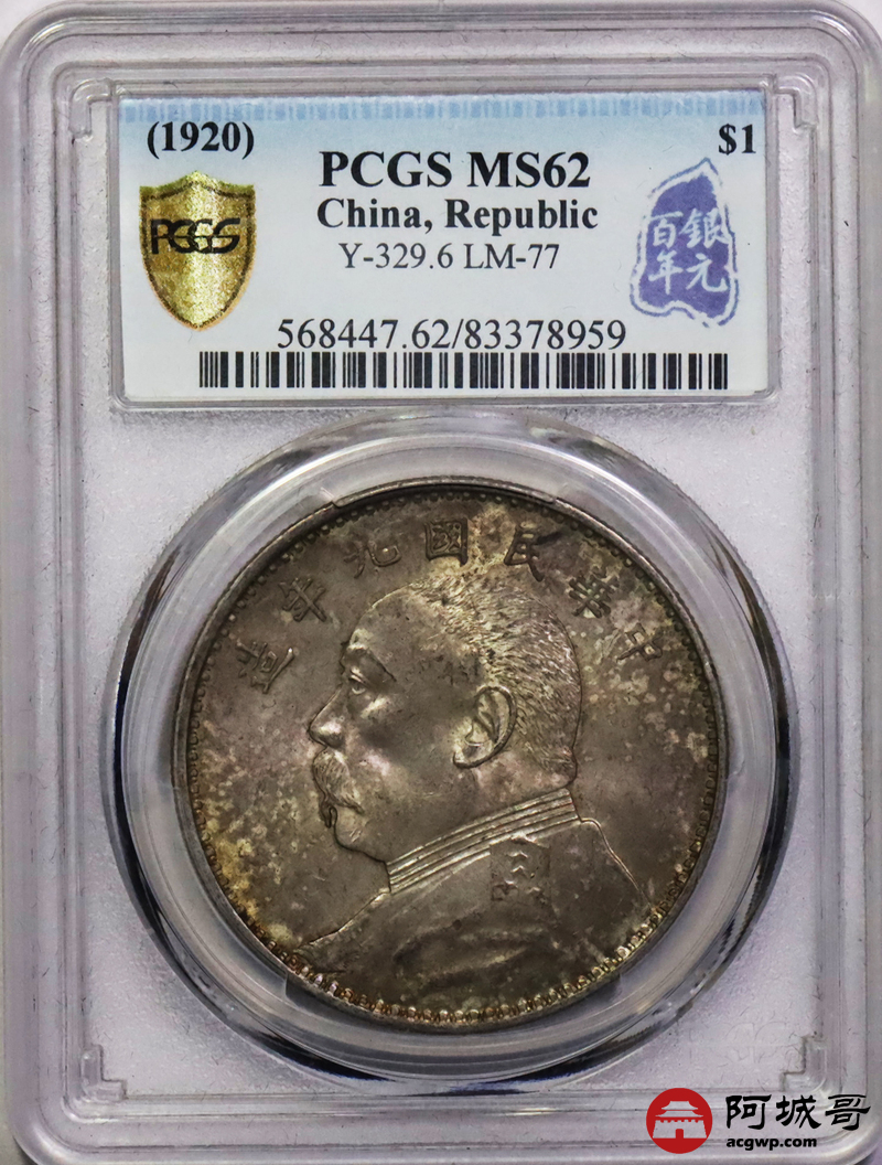 Lot:5 黄油彩浆转光 九年精发壹圆 PCGS MS62百年银元盒