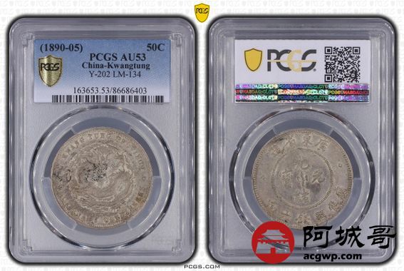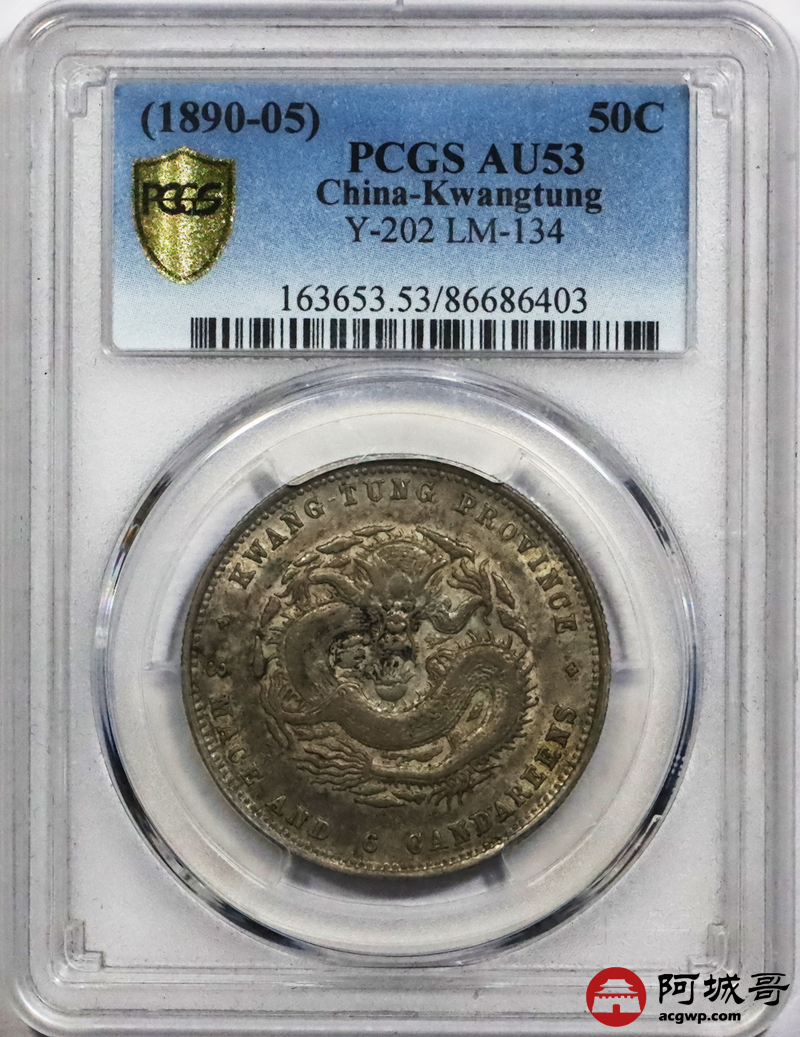 Lot:15 原汁原味底光 广东光绪三钱六分 PCGS AU53