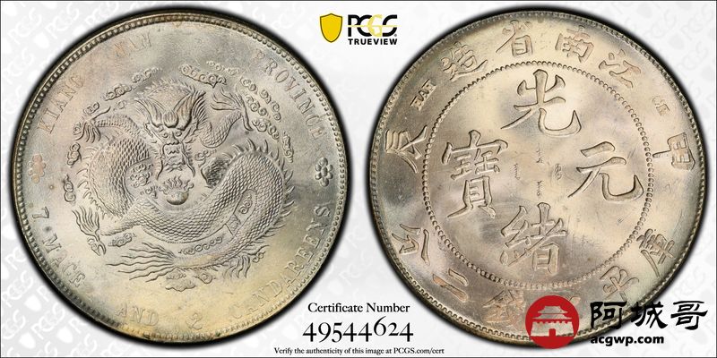 Lot:13 淡彩底板 车轮转光 江南甲辰七钱二分 一流状态 PCGS UNC