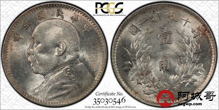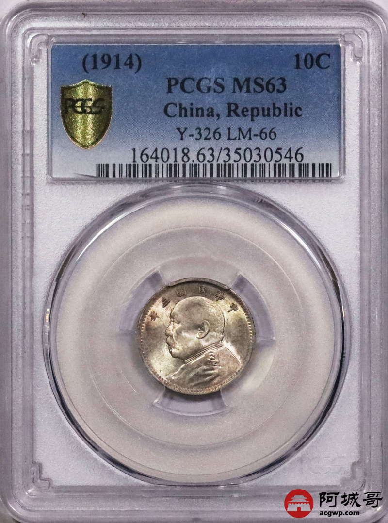 Lot:3 黄油原光 三年大头壹角 PCGS MS63
