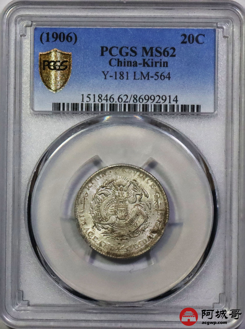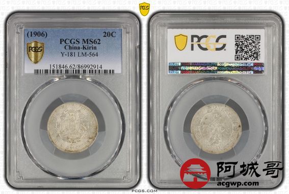 Lot:17 黄油转光 吉林丙午小花篮贰角 PCGS MS62