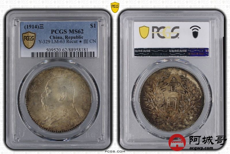 Lot:2 黄油彩原光 三年大头三角圆 PCGS MS62