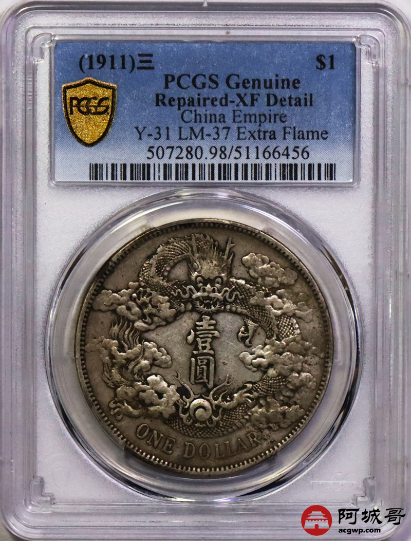 Lot:10 原味老包浆 大清宣三壹圆 PCGS XF