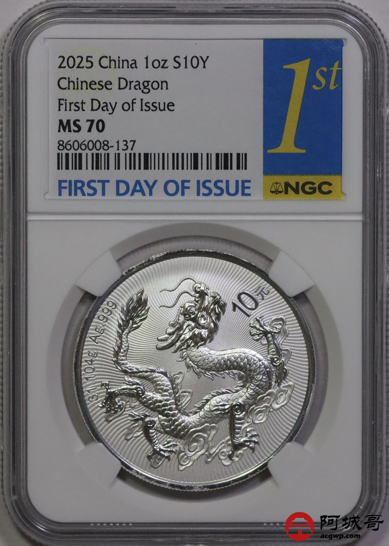 Lot:29 2025年中国龙银币 NGC MS70首日标 圆圆串号 大号非常稀少 仅此一枚
