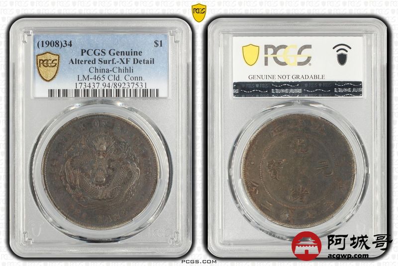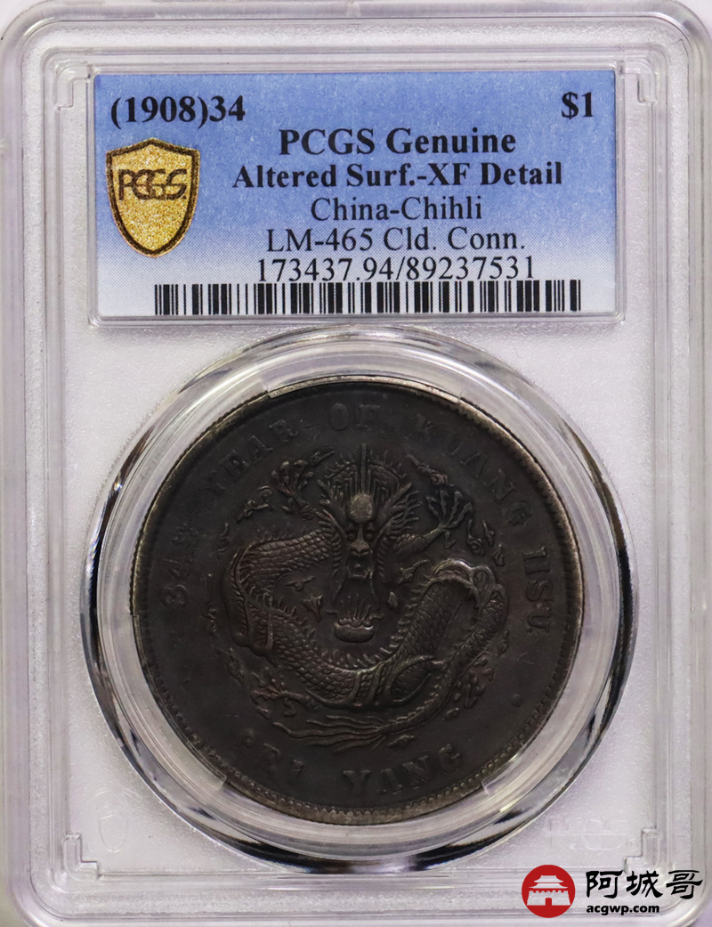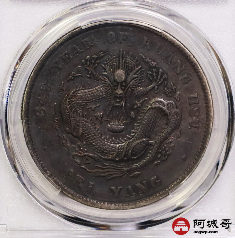 Lot:15 深打 满龙鳞酱黑彩 北洋34七钱二分 PCGS XF