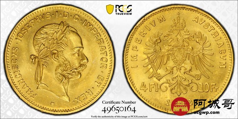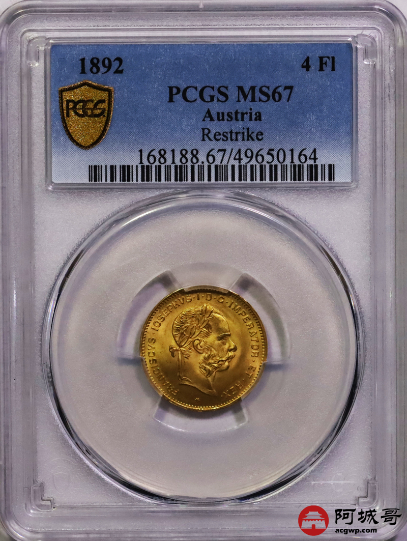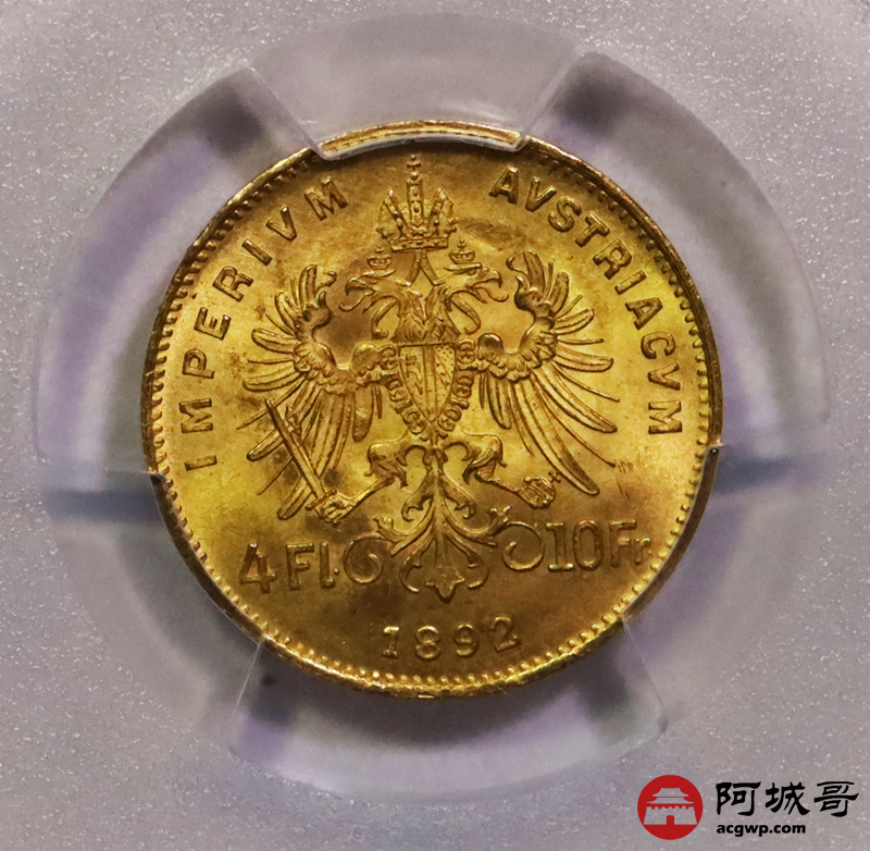 Lot:21 1892 奥匈帝国4佛罗林10法郎金币 PCGS MS67