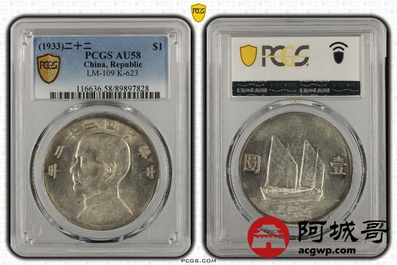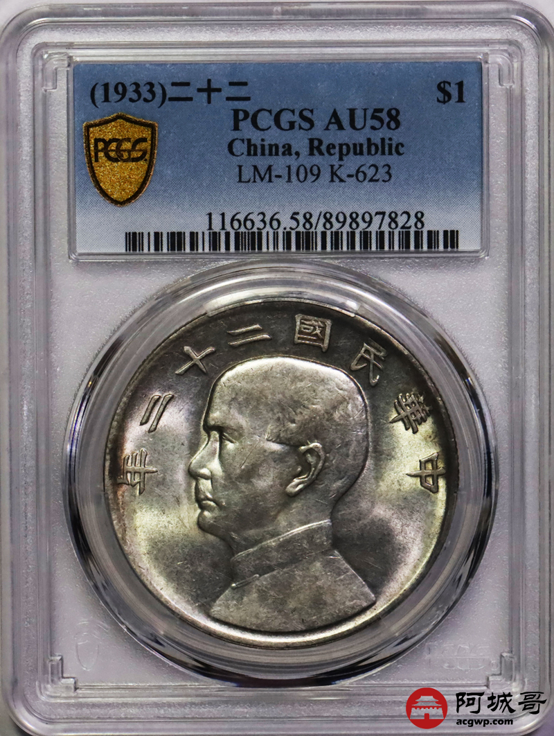 Lot:15 原光 民国22年船洋壹圆 PCGS AU58