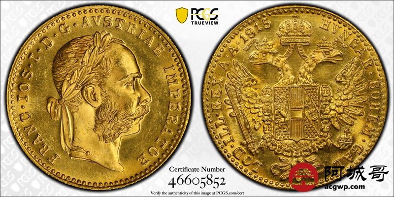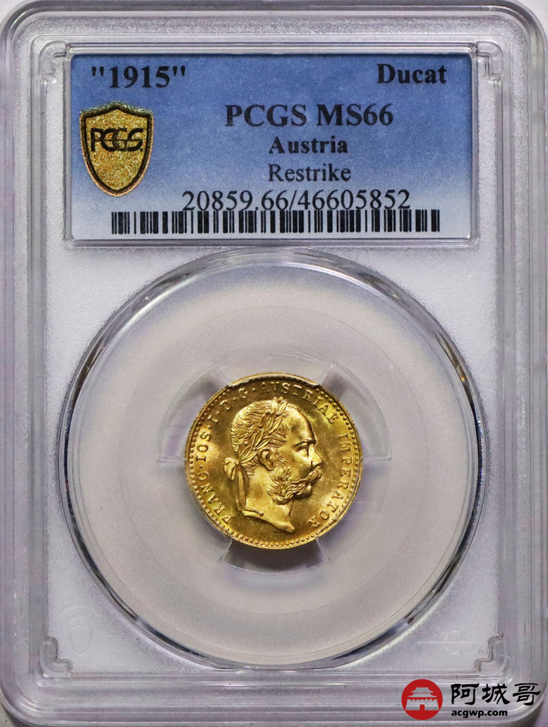 Lot:27 1915年奥匈帝国杜卡特金币 PCGS MS66