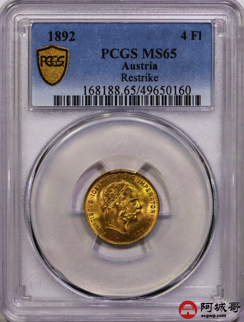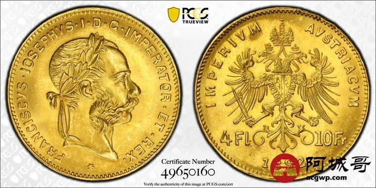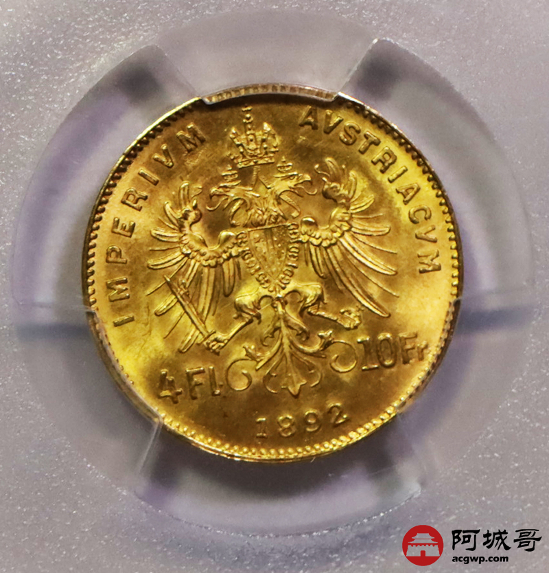 Lot:25 1892年奥匈帝国4佛罗林10法郎金币 PCGS MS65