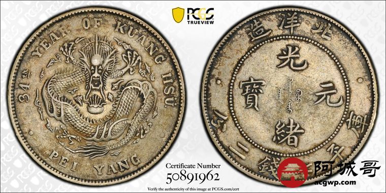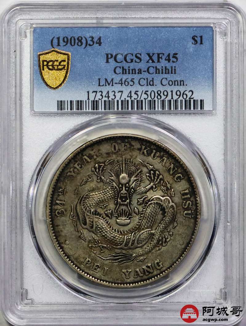 Lot:18 原味 老包浆 北洋34年七钱二分 PCGS XF45