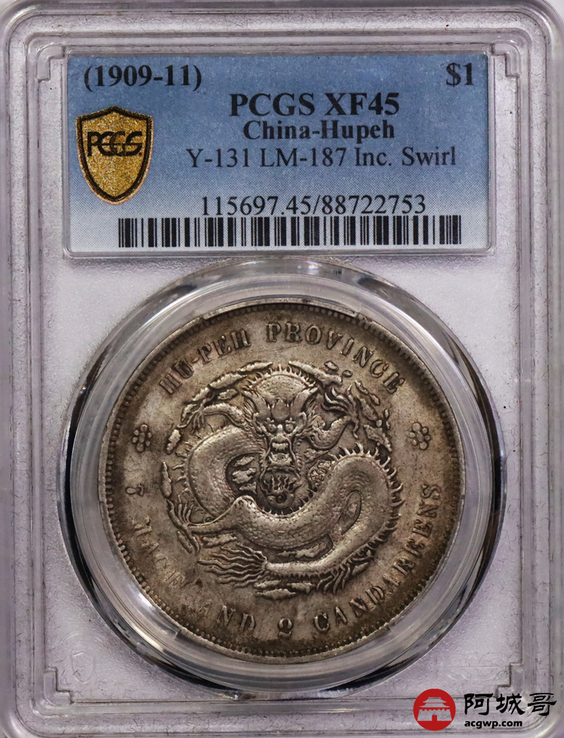 Lot:27 原味老包浆 湖北宣统七钱二分 PCGS XF45