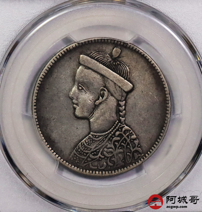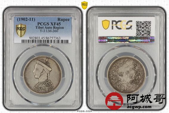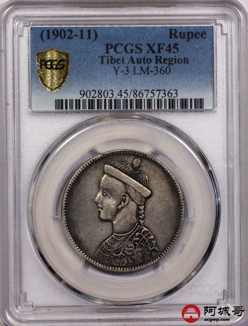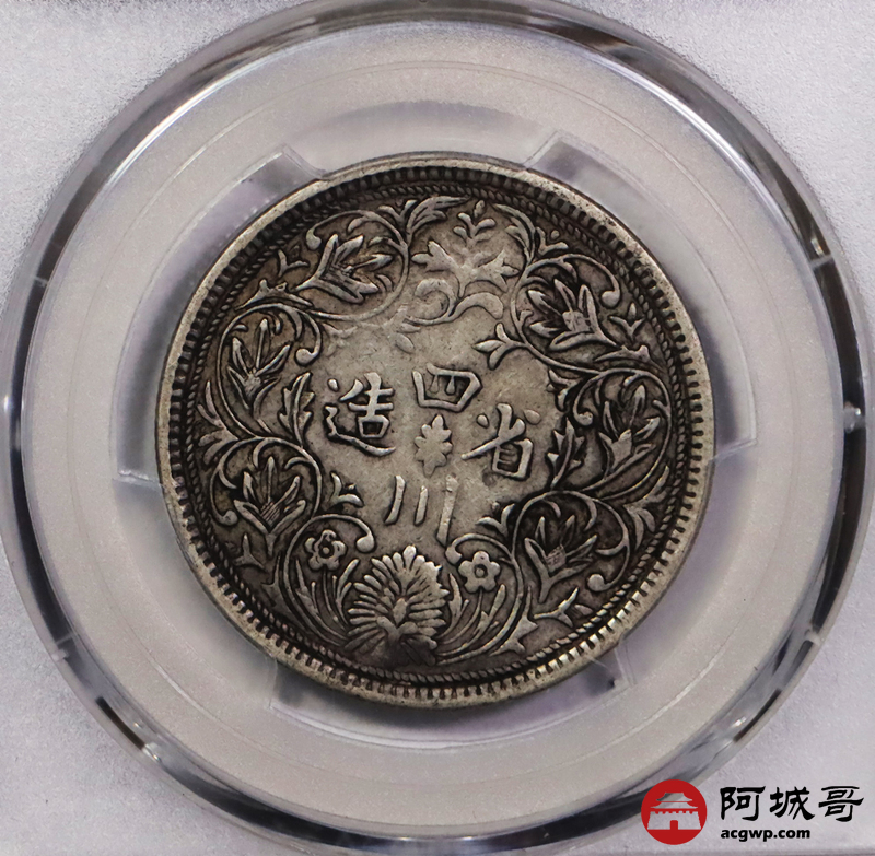 Lot:19 深打老包浆 四川一期卢比无领竖花 名普品 PCGS XF45