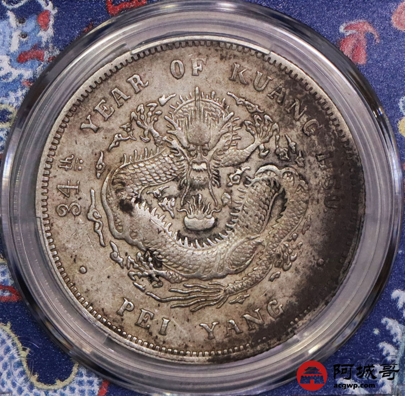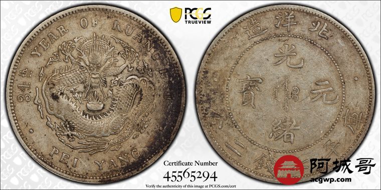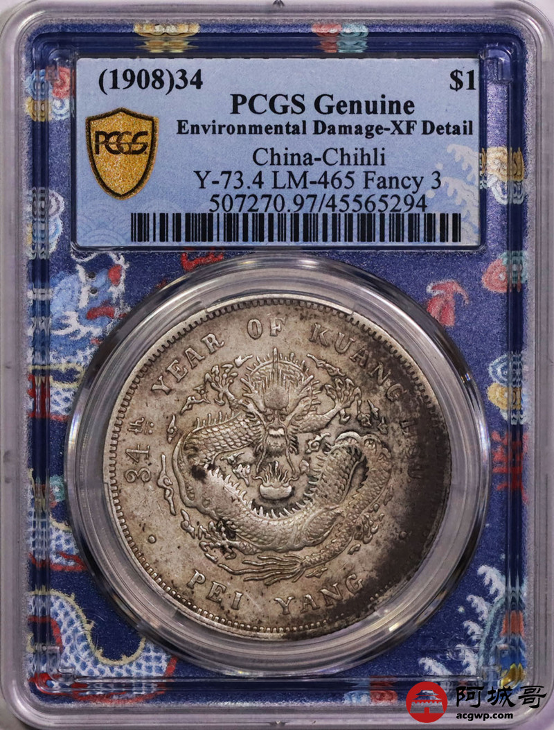 Lot:8 原味老包浆 北洋34七钱二分 大卷三高脚四 PCGS XF