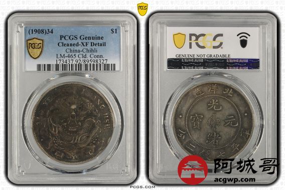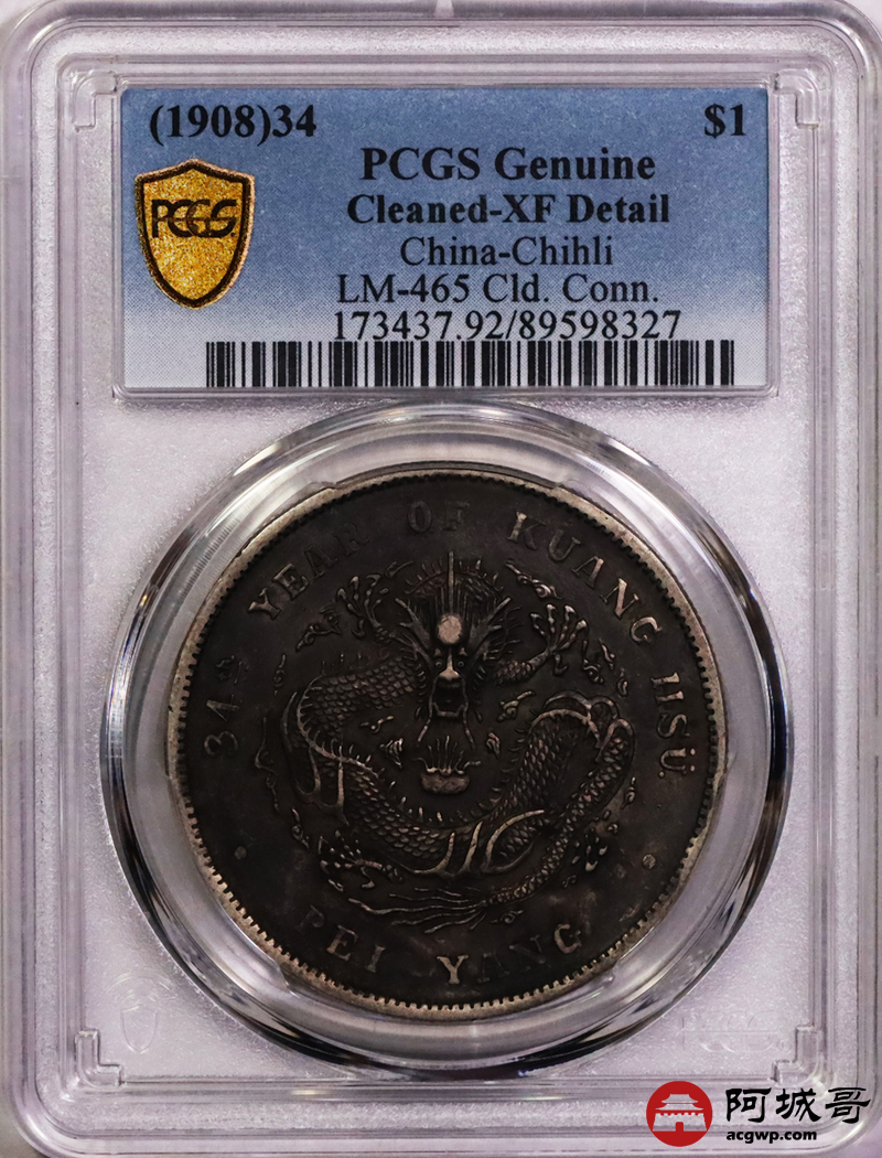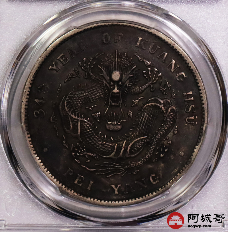 Lot:7 深打 黑彩爆鳞 北洋34七钱二分 PCGS XF