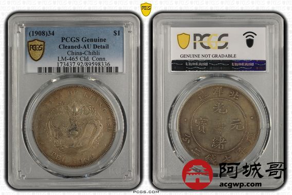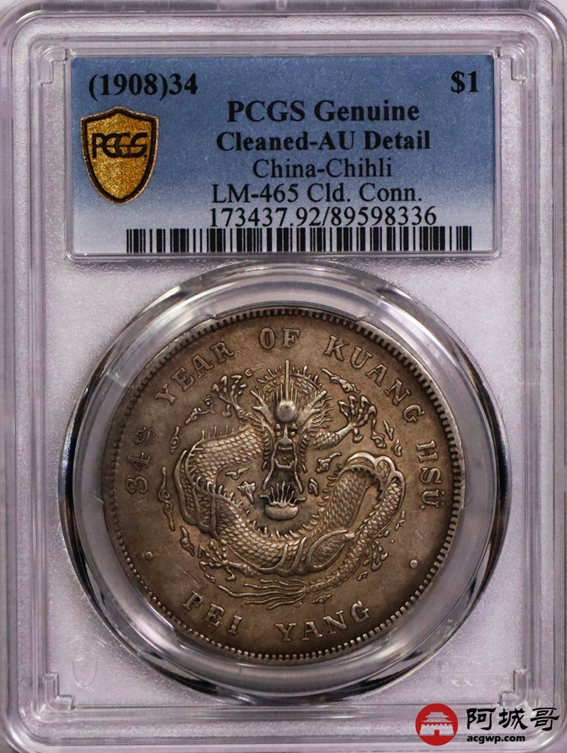 Lot:5 深打 黄油彩 北洋34七钱二分长尾短云 PCGS AU