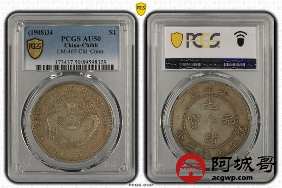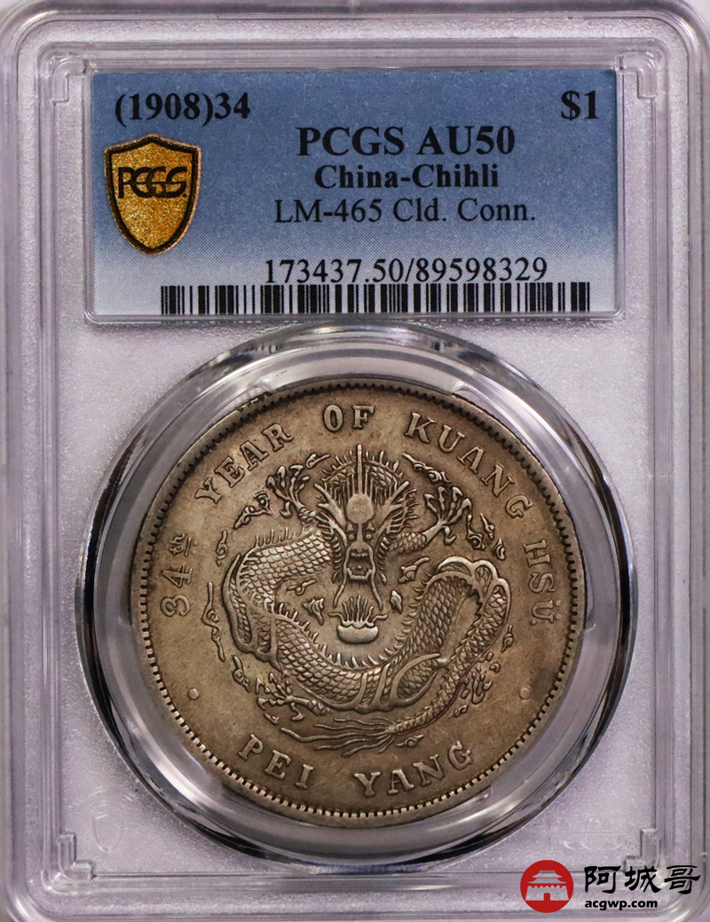 Lot:11 黄油彩北洋34七钱二分 PCGS AU50