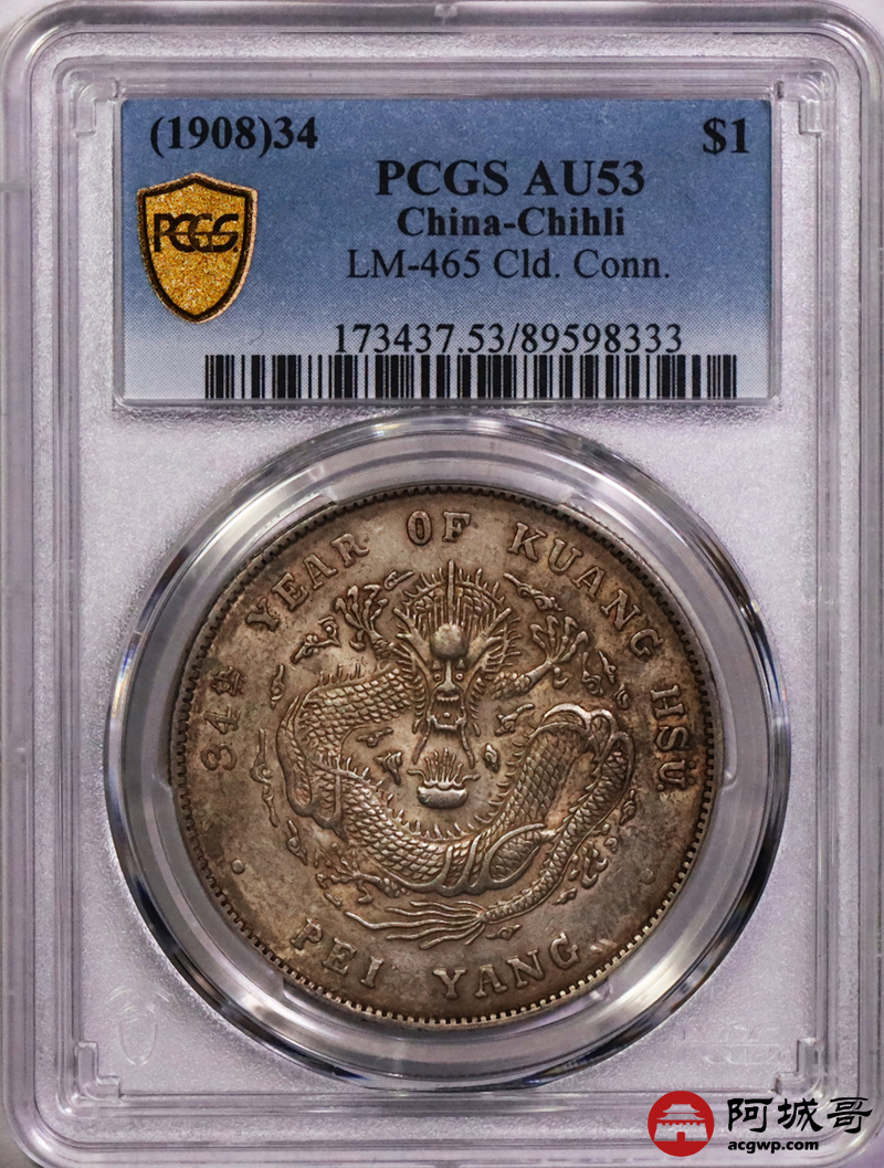 Lot:13 黄油深打 北洋34七钱二分 PCGS AU53