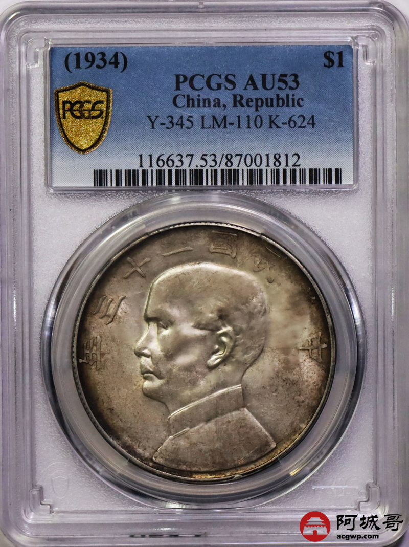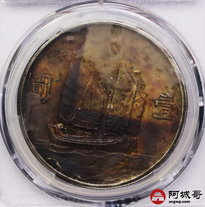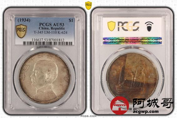 Lot:4 底光 五彩 民国23年船洋壹圆 PCGS AU53