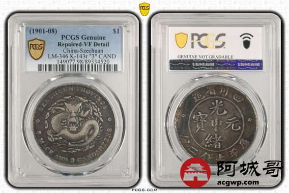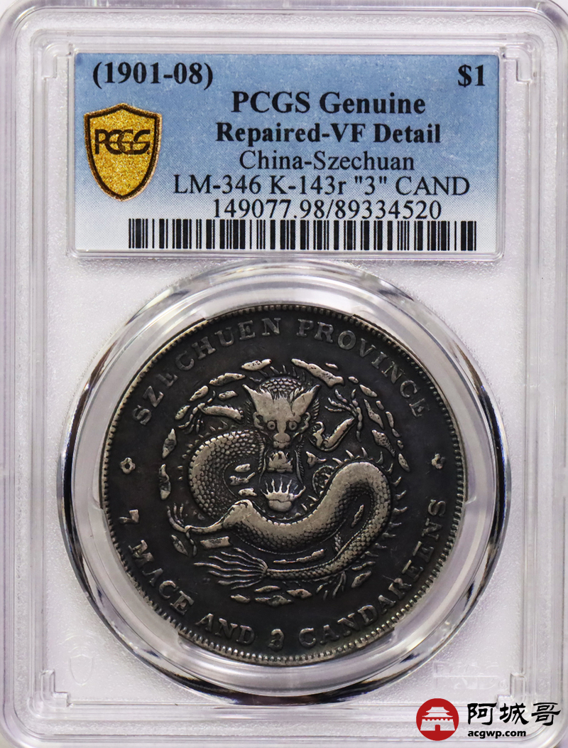 Lot:11 酱彩 四川光绪七钱二分 误书7.3 PCGS VF