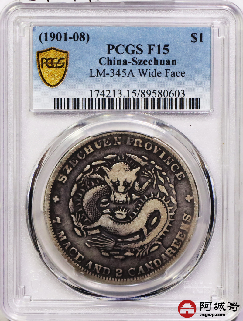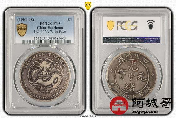 Lot:10 原味 四川光绪七钱二分 大头龙 PCGS F15