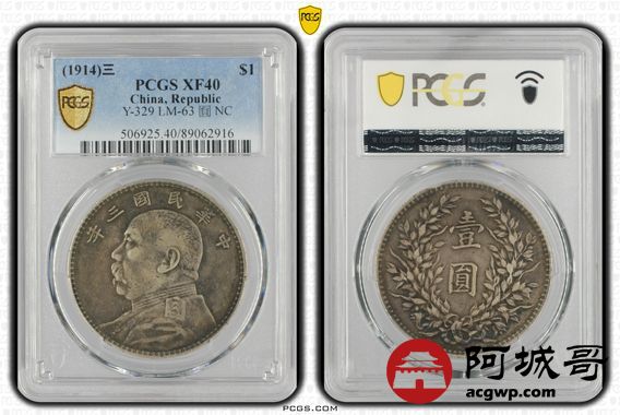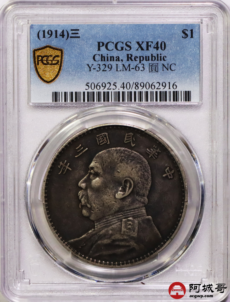Lot:6 原味老包浆 三年大头壹元 PCGS XF40