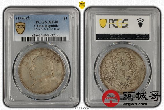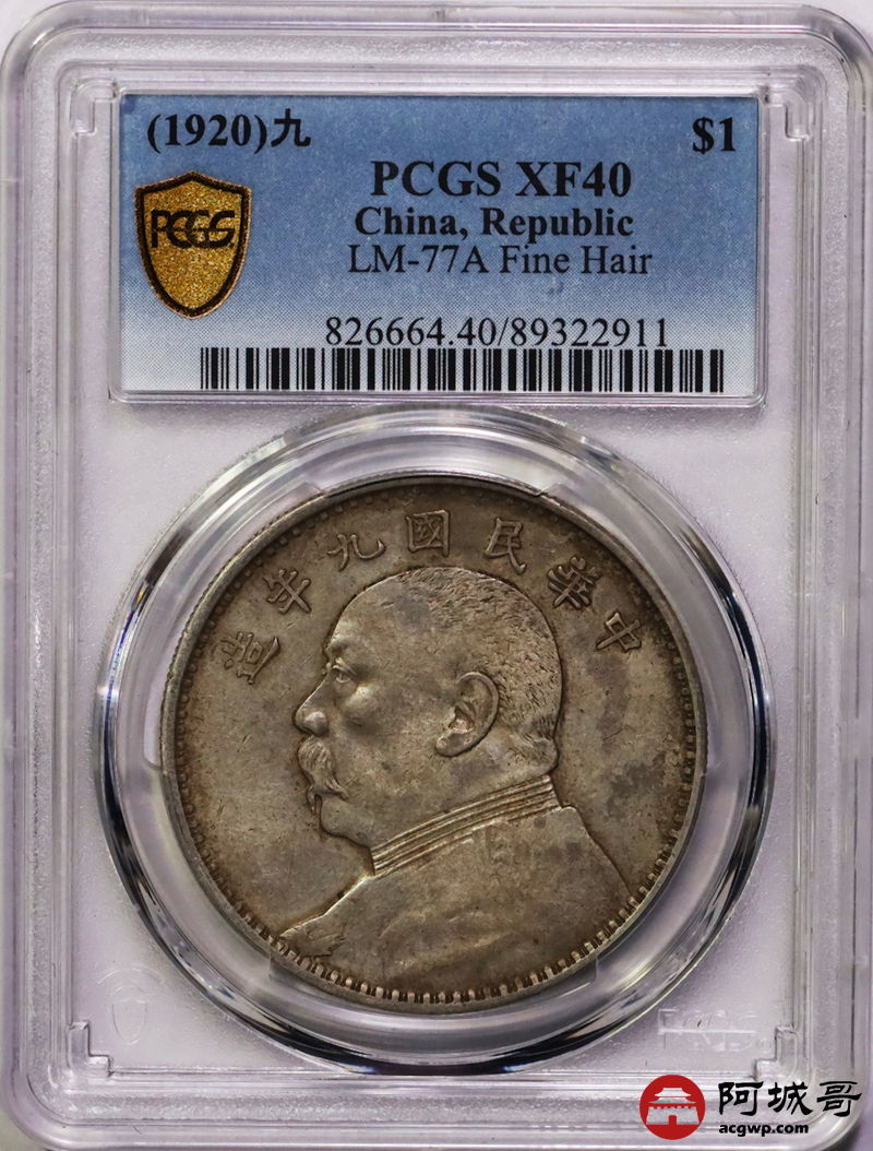 Lot:7 原味包浆 九年精发大头壹元 PCGS XF40