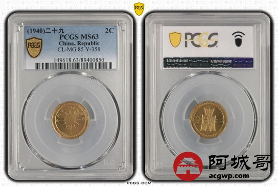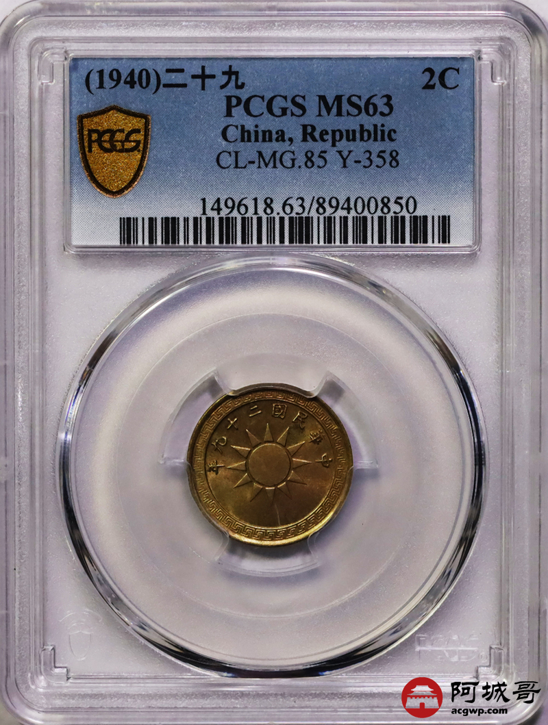 Lot:14 民国二十九年布图二分 PCGS MS63