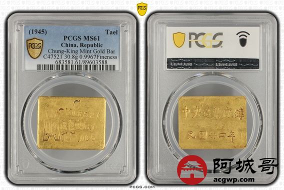 Lot:null 民国三十四年厂条一两 30.8g PCGS MS61