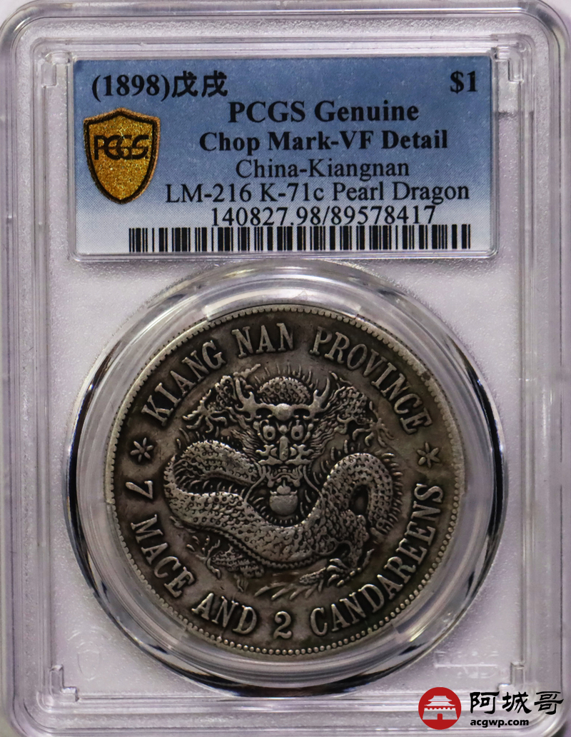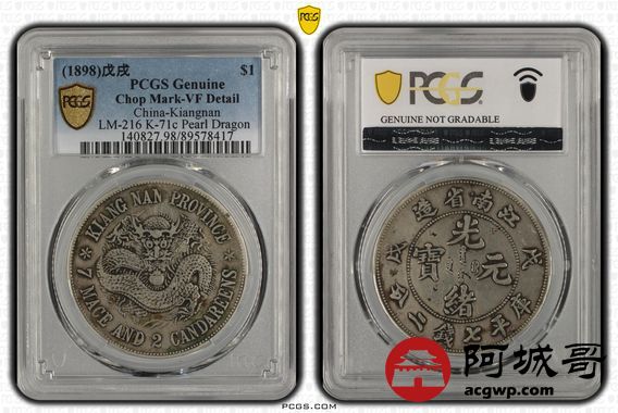 Lot:34 原味 包浆 江南戊戌七钱二分 PCGS VF