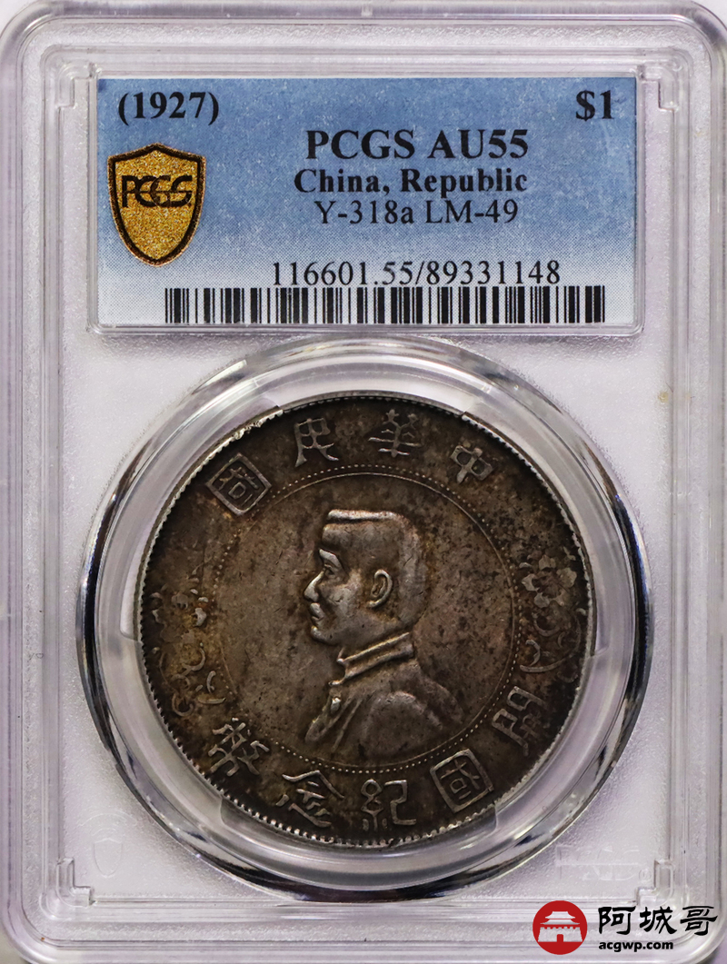 Lot:37 黄油转光 孙像小头壹元 PCGS AU55