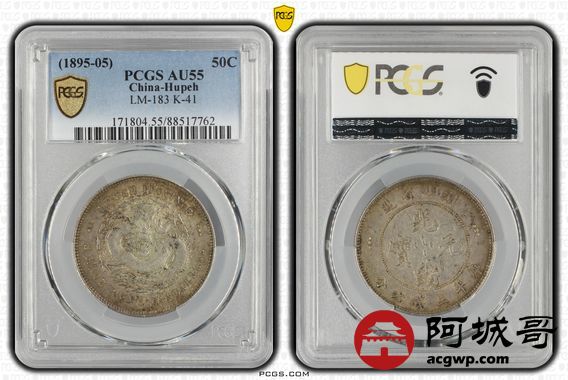 Lot:null 黄油低光深打湖北光绪三钱六分 PCGS AU55