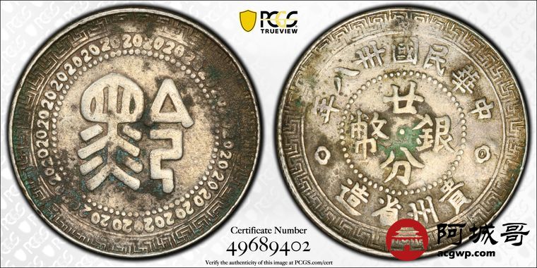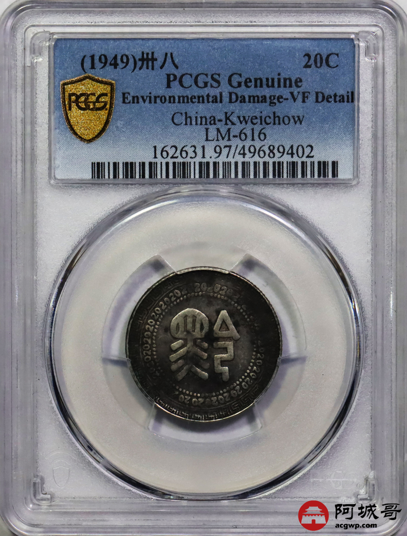 Lot:null 原味老包浆 贵州黔字二十分 PCGS VF